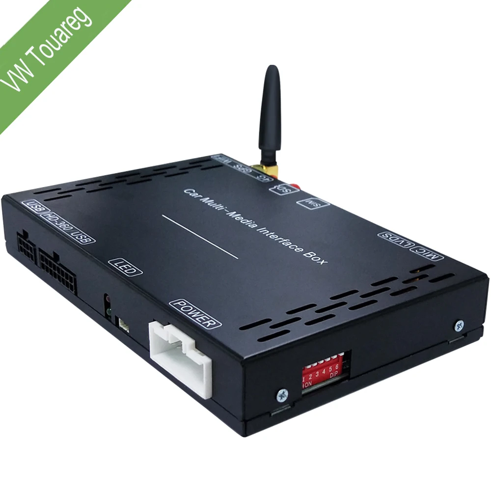 Car Android Multimedia Interface Box Car android system box decoding box for car dvd player for VW Touareg(2011-2017) Applicable car models:VW Touareg(2011-2017) The biggest features: 1, retain the original MIB host and all functions, add a set of Android AI artificial intelligence system; can achieve complete integration with the original system. 2, support 4G network, powerful voice engine, support AI artificial intelligence dialogue, support voice control of various APP functions; online real-time road conditions ; Product features: 1. non-destructive installation, does not destroy any line on the car, keep the original car host and the original car host directly convert to the plug 2. digital LVDS high-definition signal transmission, the display effect is as clear as the original car system; 3. Built-in two-way CANBUS communication system, support plus Android system box touch control on the original car screen, support function steering wheel to adjust the volume, up and down music 4. support the original car with fiber Dynaudio (Most Dynaudio) decoding; 5. the switching mode between the two systems: long press the "mute button" on the original car panel for three seconds 6. if the original factory comes with reversing camera, with 360 panorama, can support; if the original does not bring, can support the external reversing camera and 360 panorama; built-in reversing track can be switched within the settings. 7. Support video by press radar P key under artificial intelligence system; 8. support external RGB 360 panoramic HD time, touch control 360; 9. The AI artificial intelligence system has a unique design system stability guarantee mechanism; 10. powerful voice engine, support AI artificial intelligence off, support voice control of various APP functions; 11. This product adopts Android 6.0, built-in 4G module supports 4G network, voice control, and can insert SIM card; 12. support WIFI connection, and WIFI hotspot; 13. expansion: 2 USB (one way to read music, all the way to an external recorder), the host has an SD card expansion port; 14. support high-definition movies, lossless music: video formats: 1080P, H.264, MPEG4, RMVB, AVI, WMV, 3GP, MP4, MOV, MPG, VOB, MKV, FLV, TS, TP, DAT audio formats: APE, FLAC, WMA, AAC, OGG, RA, WAV, MP3, MP2