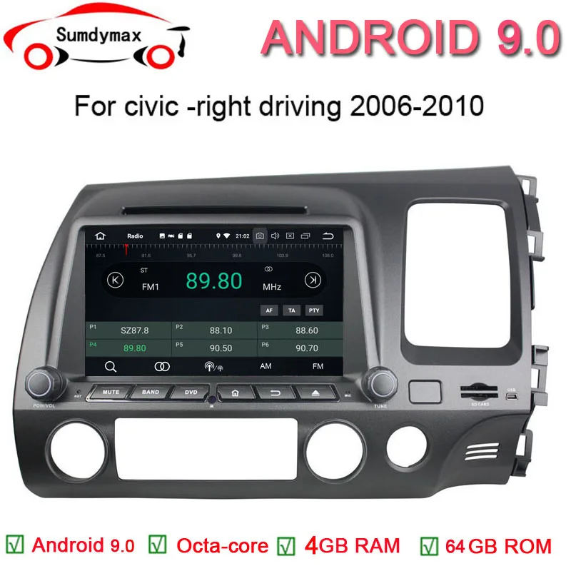 Fit for honda civic right driving 2006-2011 android 9.0 Car Multimedia Player with gps navigation built in wifi mirror link Welcome to Shengxinco.,ltd internet store. 1. Pure Android 9.0.0 OS, HD1080P,Capacitive Screen. 2. Super Hardware Performance, PX5 Cortex A53 1.6GHz, 8 core 64-bit. 3. Built-in WiFi , Bluetooth, microphone, GPS Module. 4.Amplifier IC:TDA7851. Radio IC: TEF6686. Bluetooth: 4.2. 5. 3D Live Wallpaper & DIY Wallpaper. 6. Support DVR/OBD/Front and Rear Camera/Digital TV. 7. Support DVD, CD. Support Mirror-link. Support headrest video. Download More APPs from Google Play Store. 8. Newest versions: Android 9.0+4GB RAM+32G/64GB ROM+ 8Core 9. Support steering wheel controls, split-screen mode.