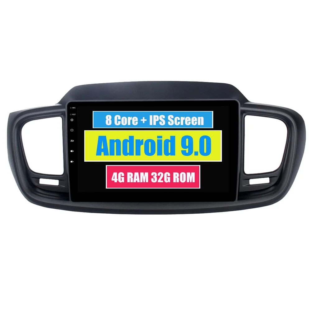 Android 9.0 Octa Core Car Multimedia System for Kia Sorento 2015 2016 Replace Original Radio CD / DVDPlayer, Not Fit The Car with Factory Navigation. CPU: Rockchip PX5 Octa-Core, 64-Bit Coretex A53 OS: Latest android 9.0 Oreo RAM: DDR3 4GB; ROM: 32GB Superior Amplifier Chip: TDA7850 (4*50W Max) Radio Chip: NXP 6686, Low IF Tuner, High Performance Screen: IPS Screen; Resolution: HD 1024*600 Bluetooth: Hands-Free Profile &Audio Profile (A2DP); Free 1.5m Microphone Variable Key Illumination, All RGB colors Fast Boot time(2nd time): about 3s; Cold Boot time: about 20-25s
