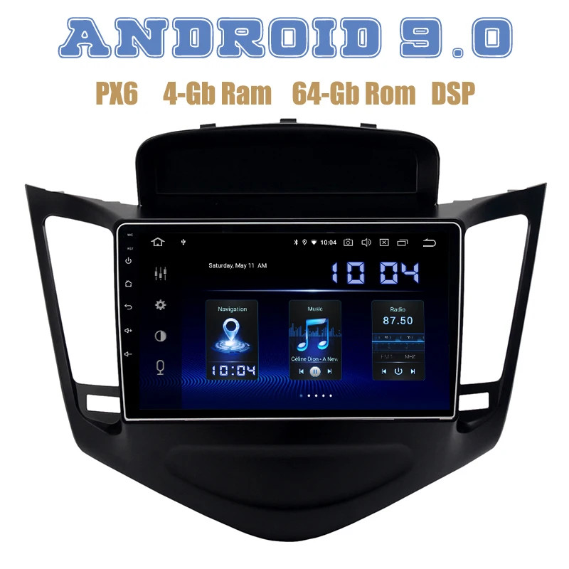 This unit fits for Chevrolet Cruze 2008+ Product advantages:support original usb,on-star,car console setting ,car engine info.,door info.,AC info.,original parking sensor . not support original rear camera Features/Specifications : 1:Android 9.0, RAM:4GB, ROM:64GB,CPU:PX6RK3399Processor 1.8Ghz+ 1.5Ghz 2:Built-in DSP digital Sound Processor TDA7850amplifier IC, 4X50W, 15-Band Equalisation, Supports subwoofer audio output. 3:IPS Screen, Resolution: 1024*600, Supports 4K/1080P HD video, 4:Supports GPS & Glonass Navigation 5:Support Bluetooth call, Sync phonebook,quick search contacts, external microphone Built-in WIFI with WIFI antenna included. Support 4G modem (Optional Function Device) 6:Supports Steering Wheel Control toChange the music track, volume, radio channel, video playetc. 7:Professional DSP processor 15-segment EQ adjustment:ADAU1401AWBSTZ Notice:1:PX3 2G 16G Android 9.0 is Quad core, no HDMI output,no DSP(DSP can order separate) no HDMI 2:PX6 4G 64G Android 9.0 is 6Core,Quad core+Dual core,with bulid in DSP and HDMI output