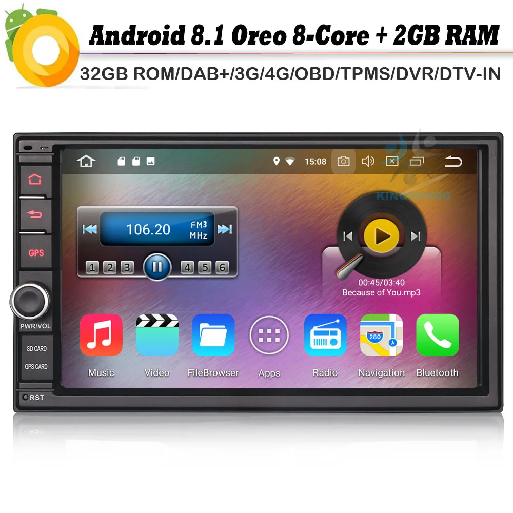 This unit is the best android car multimedia system on the market, 8-Core with high-speed processing, the most functions can be compared with your smartphone 7"All-in-One Universal 2Din Design. Adopt the newest Android 8.0 Oreo OS, 1024*600 HD Capacitive Touch Screen, Octa Core1512MHz CPU, 4GB RAM and32GBInternal Storage, Support extended Media & GPS Card/2 USB Stick up to4*32GB. it has special Port forDigital TV Box, you can connect ourDigital TVBox to achieve touch operation, and this item can power on the connected DTV Box. built-in DAB+ System, just connect with our DAB+ Box to use this function. built-in TPMS App for display Tire Pressure Monitoring System, just connect with our TPMS product through USB to use this function, and built-in DVR App, just connect with a USB Camera to use Car Record function. the records will be saved in Card/USB Storage automatically, and you can play saved record on this unit directly. Support Mirror Link for iPhone and Android SmartPhone.Support Torque Pro (OBD2 & Car), you can connect a ELM327 Bluetooth OBD2 Scanner Tool to use this function. Most popular and strongest function: Support 1080P Videos/live images/2160P Photos, support PDF/WORD/TXT/EXCEL, Audio/Video/Photo media Player, surf Internet through 3G/4G or WiFi, support Google online maps and Free Android offline maps GPS Navi, get access to thousands of apps, games on the Google Play Store, keep connected through Twitter, Facebook, Gtalk, Gmail, WeChat, Skype and other services, play popular games like Fruit Ninja, Feed the Candy, Angry Birds, Big Fish, Air Attack... Radio, RDS, Bluetooth, USB, SD, CAM-IN, AUX, Steering Wheel Control, 8 Panel Light Colors and via RGB Combination, Live Wallpaper, DIY Wallpaper KEY FEATURES: GoogleAndroid 8.0 OreoOperation System, Beautiful and fashionable UI Unique Design ISO2Dinuniversal unit without DVD, 7 Inch super wide Screen Five-PointTouch CapacitiveScreen,1024*600HD Digital Screen SupportSplit Screen, you can run two apps side by side Octa-CoreRockchip PX5 Industrial-grade Chips,1512MHzCortex A53 CPU 4GBRAM,32GBInternal Memory, support extended 1 GPS Card & 3 USB Stick up to4*32GB Built-In Clock and Calendar, Clock/Date/Week/Time Zone adjustable, can use network-provided time Multi-Languages: it has more than180 languagesto select, just check it in our pictures Built-in Dimmer, can choose brightness mode to Light/Dark/Auto and adjust Brightness Level 8 Panel light colors, and you can setup hundreds of colors viaRGBCombination Change Wallpaper at will, you can choose wallpaper from built-in 29 Pictures and 5 Live wallpaper, or DIY external User's Picture Built-inWiFi Modem, support 802.11b/g/n WLAN Standard, High Performance, Low Power Consumption Built-in WiFi Internet and support external3G/4G Internet,3G/4G Dongle is not included SupportGoogle Mapsonline Navigating, you can use GPS Navigating if you are in Internet SupportAndroid MapsNavigation, Free 8GB TF Card will be in parcel contents included Support Android Multimedia Player, it can play Music/Movie/Photo from local Disc or USB/SD. Online Entertainment, support online video, TV, movie, music, radio, Youtube, Yahoo, MSN Online Communication, keep connected through WeChat, Twitter, Facebook, Gtalk, Gmail and other services Support read and edit Official Software, WORD, EXCEL, POWERPOINT, PDF, TXT. SupportGoogle Play Store, you can download thousands of Apps from here and you can download many popular games like Fruit Ninja, Feed the Candy, Angry Birds, Fieldrunner, speed forge 3D... Support 3D Games, HD Video, 1080P, H.264, Divx Live images Formats Support HD Videos up to 1920*1080 pixels, Photo up to 4096*4096 pixels SupportBluetooth hands-freefunction, built-in microphone and external microphone Jack. SupportA2DP Bluetooth, can play stereo music through Bluetooth from your mobile Phone Download phone bookfunction, you can download contact information from your phoneto this unit SupportTorque Pro(OBD2 & Car), you can connect a ELM327 Bluetooth OBD2 Scanner Tool to use this function. Support the newestMirror Linkwith iPhone via WiFi and with Android Smartphone via USB or WiFi Radio Tuner withRDS, 78 Preset Radio Stations (FM: 36, AM: 18), Main Chips: TEF6686 USB Port and Micro SD Slot, Support USB Stick and Memory Card up to 32GB Built-inCar DVR System, just connect with a USB Camera to use Car Record function. the records will be saved automatically in Nand Flash/Card/USB Storage and you can play saved record on this unit directly. Built-inTPMS System, just connect with a TPMS product through USB to use this function Built-inDAB+ System, just connect a DAB/DAB+ Box with USB Port to use this function. Support Digital TV Box (DVB-T/T2, ATSC, ISDB) input, Touch Control and Power supply SupportRear View Camera inputand reverse trigger Control SupportSteering Wheel Control, Hand Brake Control ElectronicAnti-Shock, Last Position Memory General - Power Supply: DC 12V (allowance range: 10.8-14.5V) - Max. Current: 10A - Screen Size:7 inch - InstallSize:2Din Size: 178mm*155mm*100mm - Package Size:290mm*260mm*160mm - Shipping Weight:3.5kg System -Operation System:Google Android 8.0 - CPU:Rockchips PX5 1512MHz Cortex A53 - RAM:4GB - Internal Memory:32GB - Extended Card/USB:Support USB/SD up to 32GB Display - Touch Screen:Yes - Resolution:1024*600 - Capacitive or Resistance Screen:Capacitive - Built-in Clock and Calendar:Yes, show real time and can use network-provided time - DIY main menu display:Yes, You can drag Music/Radio/BT Stereo Player, Search bar or App-Icon to main menu - Change Apps-Icon Position:Yes Internet - WiFi Internet:Built-in WiFi Modem, support 802.11b/g/n, support WiFi Hotspot - 3G/4G Internet:USB 3G/4G Dongle not included, just contact us to buy it together - Explorer:Opera, UCWeb, SkyFile, Dolphin and more explorer for your selection - Online Entertainment:Online Video, TV, Movie, Music, Radio, Video Chat - Online Navigation:Online Google Maps Navigating - Online Games:Yes, online pla