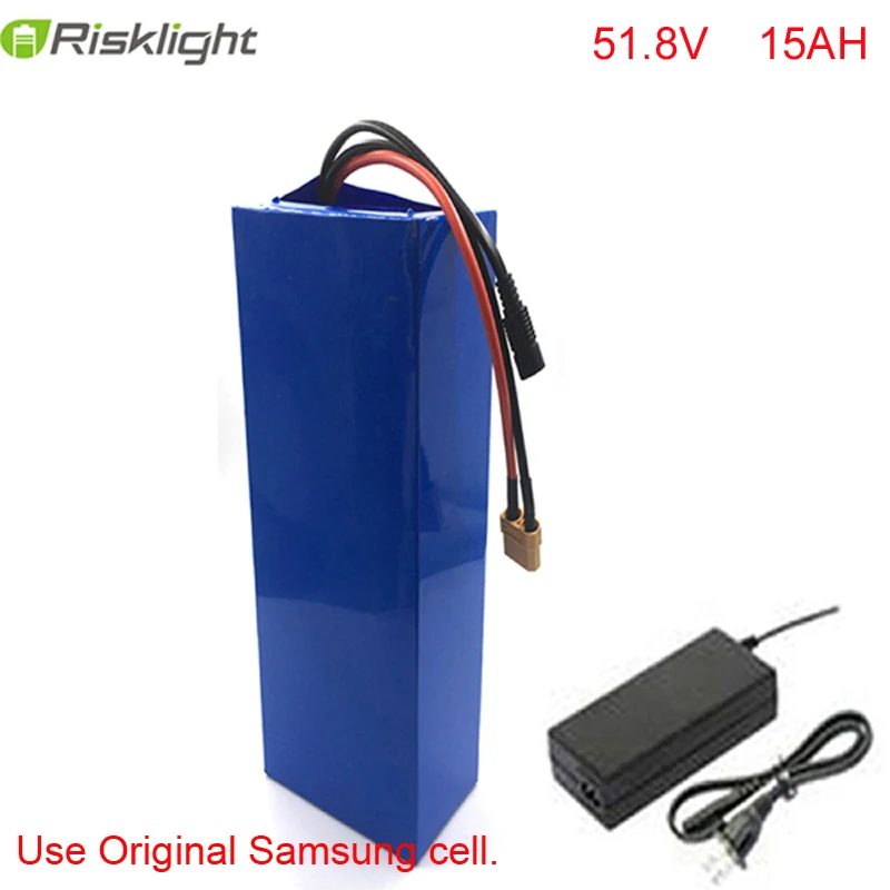 Battery Model 51.815 Voltage 51.8V/52V Capacity: 15AH Type: 3.7v 3C SAMSUNG 18650 cell Source Resistance 40 Charge Way of charge CC/CV Standard charge Current 2A Max charge current 5A Charge Cut-off Voltage 58.8V CellOvercharge protection Voltage 4.2V/CELL Discharge Continouns Discharge Current 30Amp can be customized Peak Discharge Current 100Amp can be customized Cell Overdischarge Voltage 2.8v/cell Discharge Cut-off Voltage 39.2V Cycle Life 1000 times Safety test No firs ,No explosion Overcharge Safety Test Crush Safety test Needling safety test 130 C high Temperature safety test Weight 5.0kg Size 70*140*280MM can be customized Fit moto power Less 1500w Working Temperature 0C—45C -20-C—65C Retention of charge >95% Certificate CE,UL,ROSH,UN38.3,MSDS Application E-bike,E-motorcycle,E-scooter Warranty One year Charger Parameters Applying Battery Type: Lithium Input Voltage (AC/V): 100 to240V Output Current (A): 2 A Output Voltage (DC/V): 58.8V Charging Mode: CC/CV Type of DC Output Connector: PLUG Applications: E-Bike, Electric Bike, E-Scooter, Electric Scooter ! (Suitable Wattage of Motor: from 250 Watt to 1500 Watt suggested.) Do not immerse the battery in water or seawater, and keep the battery in a cool dry surrounding if it stands by. Does not use or leave the battery near a heat source as fire or heater Use the battery charger specifically for that purpose when recharging. Do not reverse the position and negative terminals. Do not connect the battery electrodes to an electrical outlet. Do not discard the battery in fire or a heater. Do not short-circuit the battery by directly connecting the positive and negative terminals with metal objects. Do not transport or store the battery together with metal objects such as hairpins, necklaces, etc. Do not strike, trample or throw the battery. Do not directly solder the battery and pierce the battery with a nail or other sharp objects 1. Cells -A grade cellsto make sure batteries inhigh and full capacity 2. Protection -Dual IC chips, that can anti-short circuit, anti-over charger, anti-over current, anti-overload 3. Compose Type : Injection Technology tomake battery more stable. 4. Certifications : CE,UL,FCC, RoHS, ISO9001 5. Long life cycle, No memory, environment friendly. Our BMS consists of Master BMS Circuitry (we named “BMU”), Slave BMS Circuitry (we integrate it into our battery module) and contactor. Besides the basic functions such as over charge/ discharge,over current, short circuit, over temperature and balancing, Our BMS owns the following features, 1. Master-Slave architecture makes the system flexible; 2. Two level warning makes maintenance easier; 3. CAN2.0 and industrial level electronic components make system reliable; 4. Contactor makes high rate charge & discharge feasible; 5. Periodic insulation measurement makes personnel safety possible; 6. Host can control the system easily; 1. High energy density 2. High working voltage for single battery cells 3. Pollution-free, environment friendly 4. Long cycle life; It extends its cycle life up to 800 cycles 5. Capacity, resistance, Voltage, platform time consistency is good 6. Simplifying battery management system (BMS) and a battery charger 7. With short-circuit production function, safe and reliable 8. Factory price & High quality 9. Fast charging 10. Light weight, small size 11. Large overcharge tolerance and safe performance 12. Self balance 1. OEM orders are available 2. Superior quality and cost-performance ratio 3. Tags, plugs and connectors are available 4. We could design and produce the battery pack with aluminum alloy shell and assembly procession for customized configurations is available (we could design and develop Li-ion battery according to your product work performance & structure appearance) 5. Bulk pack is available Lithium ionbatteries are common in consumer electronics. They are one of the most popular types of battery for portable electronics, with one of the best energy-to-weight ratios, no memory effect, and a slow loss of charge when not in use. In addition to uses for consumer electronics, lithium-ion batteries are growing in popularity for defense, automotive, and aerospace applications due to their high energy density. Li-ion batteries are lighter than other equivalent secondary batteries—often much lighter. The energy is stored in these batteries through the movement of lithium ions. A key advantage of using Li-ion chemistry is the high open circuit voltage that can be obtained in comparison to aqueous batteries (such as lead acid, nickel metal hydride and nickel cadmium). Long battery life: 1000 plus recharges Ultra light and small size Super high discharge rate means more power. Super long range It never explodes! Peace of mind for you! No Memory Effects Maintenance Free: only need to charge it once every month if you are not using it 51.8V/52V 15AH 1500w 1000W Lithium Battery with PVC Case,30ABMS and 58.8V 2ACharger: Parts included: 1.51.8V 15AH 1500W Lithium Battery with PVCcase 2. 30ABuilt-in BMS board 3. Charger (58.8V 2.0A 100-240V 50/60HZ US,EU,UK,AU PLUG) You can choose battery discharge port : A ,B,C,D 1.Light electricvehicles: such as electric bicycle, golf car, small-scale electric flat car, forklift, cleanness car, electric wheelchairs 2. Large-scale electric vehicles: such as bus, electric car, tourist car and commix car 3. Electric tool: electric drill, electric saw, lawn mower 4. Remote control cars, boat, aircraft, toys, 5. Solar and wind power generation energy storage devices 6. UPS emergency lights, warning lights and miners lamp 8. Small medical equipment and portable equipment experience We have more than 10years experience in producing Nicd&NiMH&Lithiumbattery cell and pack,7years of experience to manufacture Lithum ionbattery,thefactorypassedISO 9001:2008 certification. Strict process management and control Each process for making battery wereunder strict managementand control,all of the battery wereunder full inspe